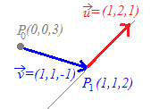 (A) 点(0, 0, 3)を通り,2つのベクトル=(1,2,1), =(1,1,−1)を含む平面と考えることができます.
