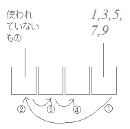 千の位から順に埋めなければならないことはなく,どの位の数から埋めても構いません.このような問題では「条件の厳しい」位から埋めると場合分けが少なくて済みます.一の位は,1,3,5,7,9の5通り その各々について,千の位の埋め方は一の位に使われたものを除いて(この場合は0も許して)9通り その各々について,百の位の埋め方は,一の位と千の位に使われたものを除いて(0も許して)8通り その各々について,十の位の埋め方は,一の位,千の位,百の位に使われたものを除いて(0も許して)7通り 積の法則により,9×8×7×5=2520通り |