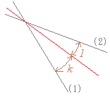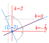 (この式では k の図形的意味は単純な傾きではないが,各々の直線からの影響の強さを 1 : k で表わしている. )