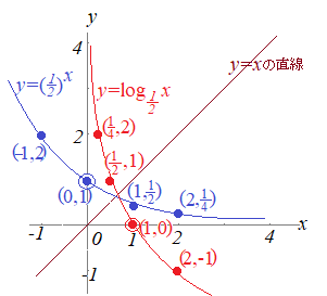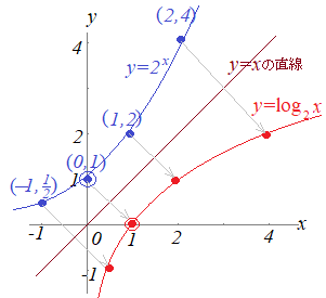 対数の形で書かれる式y=logaxは,指数の形で書かれる式y=axx座標とy座標の役割を入れ替えたものです.