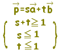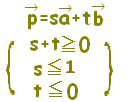 =>[作者]:連絡ありがとう. 質問者が気分を害されるかもしれませんが,質問されているようにs,tの範囲が独立に定まる場合は,当教材で扱っている内容よりもはるかに簡単なのでこの頁では取り上げませんでした. 例えば, となる位置ベクトル |