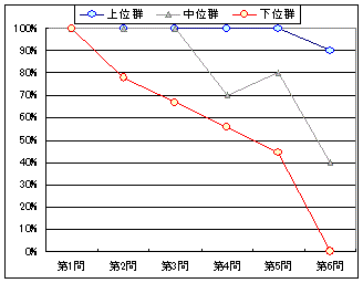 各問題の正答率は全問正解となった割合で表示しているため,小問数の影響を受ける(独立事象の乗法定理).
