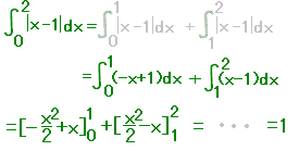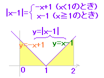 |x-1|は ア) x<1のとき-x+1 イ) x≧1のときx-1 となるから