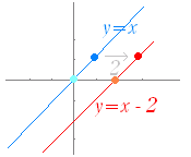 直線 y=x のグラフを x 軸の正の向きに(右に) 2 だけ平行移動してできるグラフの方程式は