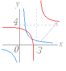 直角双曲線 y= のグラフを x 軸の正の向きに(右に) 3y 軸の正の向きに(上に) 4 だけ平行移動してできるグラフの方程式は