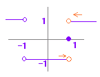 x =−1 のとき,左右の極限値が一致しないから,極限値が存在せず、不連続