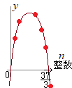 これは上に凸(山形)の2次関数になるから,頂点に最も近い整数値nで最大となるはずである.