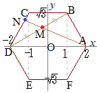 座標平面上に点A(2, 0)をとり,原点Oを中心とする半径が2の円周上に点B, C, D, E, Fを,点A, B, C, D, E, Fが順に正六角形の頂点となるようにとる。ただし,Bは第1象限にあるとする。