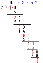 (7分の1と比べると,循環節に登場する数字の並びは同じで前に巡回しない部分が増えたものになっています.)