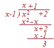 右図のように割り算を実行すれば,余りは2x−3…(答) (※高校生向けに平易に解説するには,この答案の方がよいでしょう.上の答案は無理数を代入しても同じ結果が得られるということの例として示した) |
