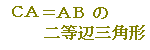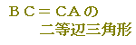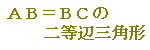 (単に「二等辺三角形」と答えると,BC=CAの場合やCA=ABの場合があるので,どの2辺が等しいかを「AB=BCの」という形で明示することが大切です.)