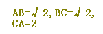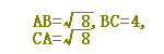 (3) 「AB2+BC2=CA2」 ならば 「B=90゜の直角三角形」などと答えます.