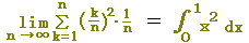 \( \displaystyle \frac{1}{n}=\Delta x\rightarrow dx,\hspace{10px}\frac{k}{n}=x_k\rightarrow x \)
