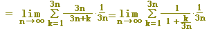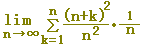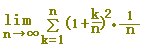 \( \displaystyle =\lim_{n\rightarrow \infty}\sum_{k=1}^n \Bigl(\frac{n+ k}{n} \Bigr)^2\times \frac{1}{n} \)