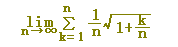 \( \displaystyle =\lim_{n\rightarrow \infty}\sum_{k=1}^n \frac{1}{\sqrt{1+ \frac{k}{n}}}\times \frac{1}{n} \)
