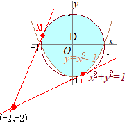 と変形できるから,領域Dにおいて,点 (解法1)・・・微分を習っている場合 接点の座標を(p, p2−1)とおいて,接線が点