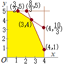 S=30x+50yの傾きはこの傾きは, 与えられた領域の内部(および周上)でS=30x+50yの直線を描くと,赤丸 で示した このとき, Sの最大値は295(万円),そのとき |