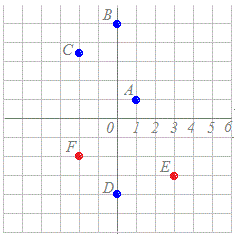 【例】(1) 右図のA 直交座標は(1,1) 極座標は(,) (2) 右図のB 直交座標は(0,5) 極座標は(5,) (3) 右図のC 直交座標は(−2,2) 極座標は(4,) (4) 右図のD 直交座標は(0,−4) 極座標は(4,) (*) 図の点E 極座標として(3,−)のようにθ<0となる角度を使うことがあります. 一般に,θ+2nπ(nは整数)はすべて同じ偏角を表す.極座標(r, θ)→図の対応はただ1通りです. 図→(r, θ)の場合は,r , θの取り得る値の範囲を定めなければ必ずしも1つに決まりません. 通常は,r≧0とするので,rはただ1通りに決まります. また,通常は偏角を0≦θ<2πとするので,θはただ1通りに定まります. (*) 図の点F 極座標として(−2,)のようにr<0となる場合は (2,)と同じになります. |
