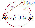 ABを直径とする円周上に点Pが直径があるためには,2直線の垂直条件を満たすことが条件となる