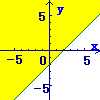 下図の黄色の部分.ただし境界線は含まないものとする.