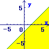(1)まず, \( y=x-2 \)の直線を考えます →y切片が−2で,傾きが1の直線 (2)次に,その直線の「下側」の領域を答にします