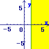 (1)まず, \( x=2 \)の直線を考えます →x切片が2で,y軸に平行な直線 (2)次に,その直線の「右側」の領域を答にします