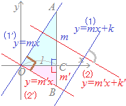 y=mx+ky=m'x+k'とが垂直 ←→ mm'=−1