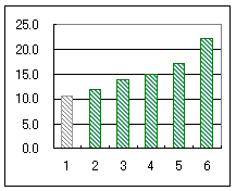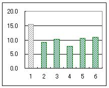 グラフ2は横軸が問題番号,縦軸は直前の操作以降その問題の採点までの経過時間を表わす.ただし,第1問は初めからの時間.