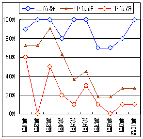 学習開始時における平均正答率は70%台で,この頁の問題は「基本問題の正答率としては普通」である.