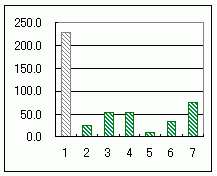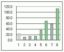グラフ2は横軸が問題番号,縦軸は直前の操作以降その問題の採点までの所要時間(秒)を表わす.ただし,第1問は初めからの時間.