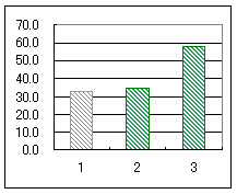 グラフ3は横軸が問題番号,縦軸が試行回数を表わす.(ただし,同一問題を16回以上試行した答案については16回と見なす.)