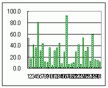 グラフ2は横軸が問題番号,縦軸は直前の操作以降その問題の採点までの経過時間(秒)を表わす.ただし,第1問は前の解説を読む時間を含む.