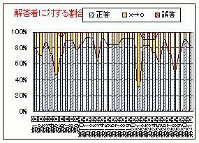 表2はグラフ1における正答者数(件数)を3つの期間に分けて集計したもので,この表から各問題の正答率の比をχ2検定で確かめると p=0.956となり,有意差は認められず再現性がうかがえる.