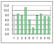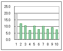 グラフ2は横軸が問題番号,縦軸は直前の操作以降その問題の採点までの経過時間(秒)を表わす.ただし,第1問は初めからの時間.