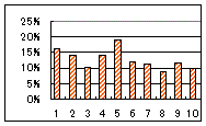 グラフ3は問題ごとの試行回数を表わす.(ただし,同一問題を16回以上試行した答案については16回と見なす.)