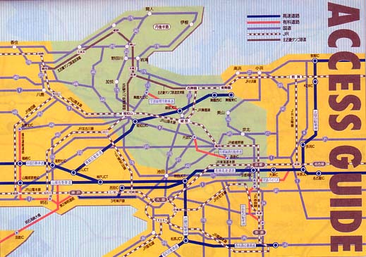 大坂より【阪神高速11号空港線】…池田出口…中国池田IC…【中国自動車道】…吉川JCT…【舞鶴自動車道】…綾部JCT…