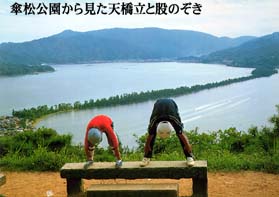 そんな、不思議な「天橋立」を大きく見渡すのは、いろんな所から見られるんだけれど、大きくは、 府中側「傘松公園」からの股のぞきが1つ、文殊側からのビューランド「飛龍観」と呼ばれる景色もやはり最高です。