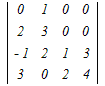 = − +0−0各々の3次行例式を1行目に沿って展開する =2( −0+0)−(0−0+ )=2(12−0)−(1−0) =24−1=23 → 4 |