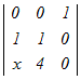 =3 −x +0−0=0各々の3次行例式を1行目に沿って展開する 3(0−0+ )−x(0−0+x )=03(4−x)−x(x(4−x))=0 12−3x−4x2+x3=0 x3−4x2−3x+12=0 この3次方程式を因数分解によって解く x2(x−4)−3(x−4)=0 (x−4)(x2−3)=0 x=4, ± 自然数解は x=4 → 4 |