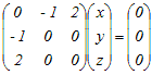 固有値λ=1に属する固有ベクトルはdet(A−λE)=0 固有値λに属する固有ベクトルとは, A=λ ⇔ (A−λE)= …(*) となるベクトル (≠)のことをいう. (これに対して,固有値は0となることがあります) ※ が(*)を満たすとき,その定数倍のベクトルも(*)を満たす (*) → (A−λE)(k)= から,固有ベクトルは大きさを除いて定まる. (A−E)= (≠) を満たす. ![]() より −y+2z=0, −x=0, 2x=0 ⇔ y=2z, x=0 したがって,tを任意の値(≠0)として x=0, y=2t, z=t ⇔ t (t≠0)が固有ベクトルとなる.問題文に沿って大きさを1つ選ぶと → 2