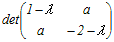 =0(1−λ)(a−λ)−3a=0 λ2−(a+1)λ−2a=0 λ=4が固有値だから 16−4(a+1)−2a=0 → −6a+12=0 → a=2 λ=−1が固有値だから 1+(a+1)−2a=0 → −a+2=0 → a=2 a=2は両方を満たす → 2 |
