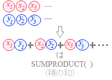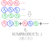 =SUMPRODUCT(A1:C1, A2:C2)は行ベクトルと行ベクトルの内積 −2*3+5*1+6*(−2)=−13 =SUMPRODUCT(B1:B4, C1:C4)は列ベクトルと列ベクトルの内積 5*6+1*(−2)+(−2)*1+3*2=32