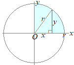 この証明は,高校数学Vで習い,次のように扇形と直角三角形の面積の比較から示すのが普通です.