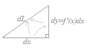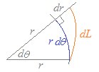 極座標でrが一定ならば,弧の長さはdL=rdθで求められるが,一般にはrも変化する.そこで, |