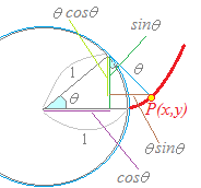 円周角の定理を思い出すと,直径の上に立つ円周角は90°になるから,直径2aにcosθを掛けた2acosθ=OPとなればPは円周上にある.したがって,この問題の結果は小学校以来学んでいる半円の長さπaになるはずであるが,これを極座標での曲線の長さの計算で確かめることになる. だから |