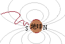 地球レベルの大きな話では,オーロラが北極,南極地方だけに出る事と関係がある.すなわち,地球を取り巻く磁力線は磁極付近では集まって濃くなっており,太陽から飛んできた電子は磁力線に閉じ込められて集まってしまう.それが光る.
