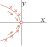 (4) 直交座標での点(0, −1)を極とし,x軸の正の向きを始線とする極座標を導入するとおく. 分子→有限,分母→0だから極限なし |