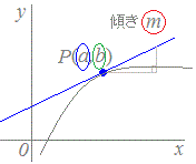 法線は,接線に垂直(直角)な直線で,一般に傾きmの直線に垂直(直角)な直線の傾きm’は