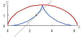 ※(参考)次の図のように,このグラフは標準的なサイクロイド曲線:[赤で示したもの]