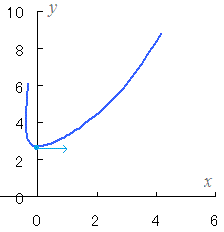 だから == t=1のとき x=0 y=2 =3 となって,接線の方程式は y−2=3x y=3x+2 ※(参考) 次の図のように,このグラフは放物線を傾けたものとなっています. ![]() → 3